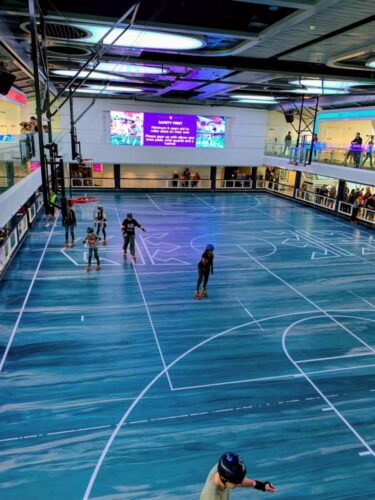 Indoors, when the weather was inclement, there was plenty to do. We found ourselves at the Seaplex section, complete with bumper cars and a roller skating rink.